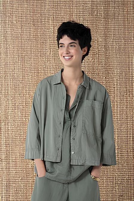 Dichtgewebte, leichte Baumwolle mit sanft knittriger Oberfläche, gefärbt als fertiges Kleidungsstück für einen schönen Farbeffekt. Mögliche Unregelmäßigkeiten in der Färbung sind ein gewünschter Effekt und keine Mängel. Der Stoff wurde in Italien gewebt.