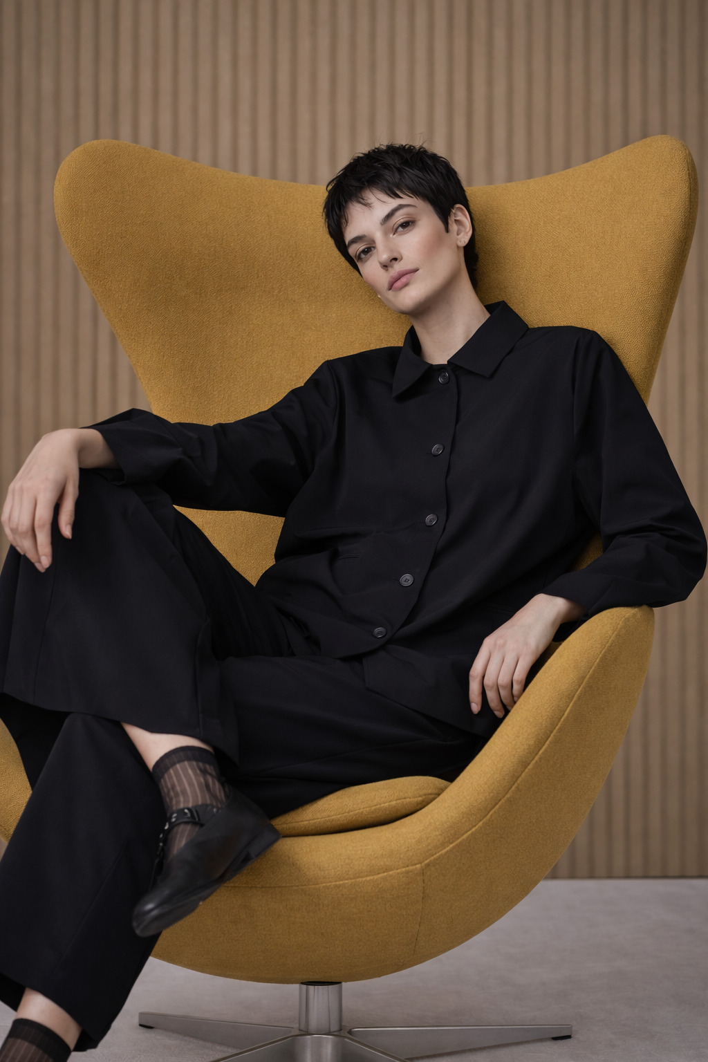 Wir lieben sie: Die OSKA Hose 511 wurde aus hochelastischem Hightech-Jersey aus Mikrofaser in schwarz und navy gefertigt. Die Hose hat ein typisches, weites Barrel-Bein, das durch Teilungsnaht vorne betont wird und formgebend ist. Das Modell hat einen elastischen Bund ohne Verschluss, seitliche Eingriffstaschen und ist ungefähr knöchellang. In Kombination mit der Jacke 512 oder 608 oder mit der Bluse 638, 639 oder 640 haben Sie einen schönen Hosenanzug. Das Material ist knitterfrei, eignet sich daher perfekt für Reisen und natürlich auch für jeden Tag.