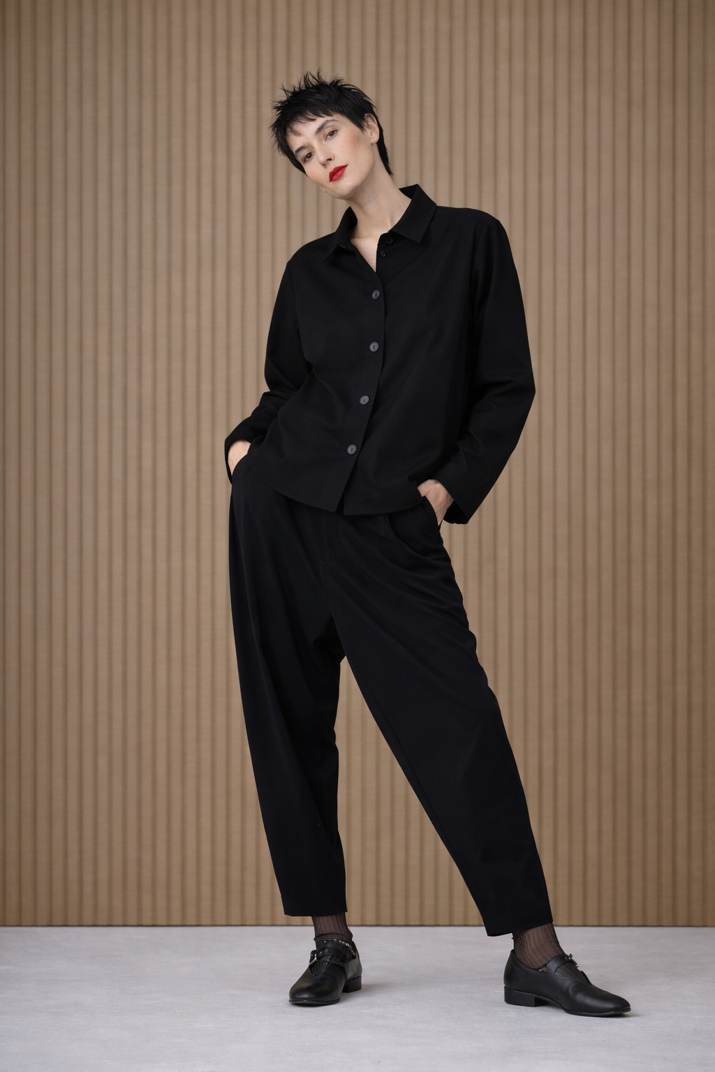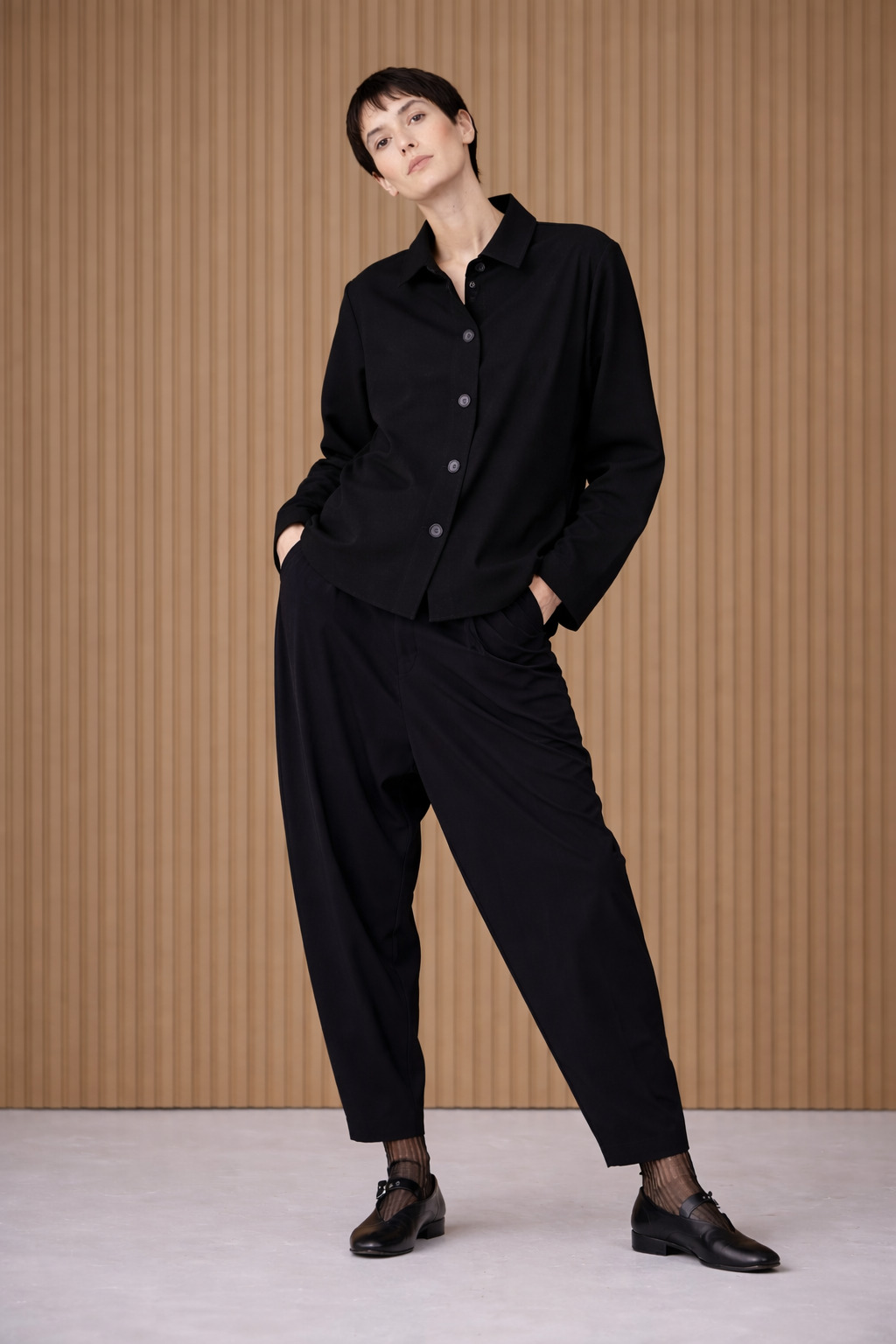 Die OSKA Hose 513 begeistert mit ihrem legeren Design. Sie wurde aus hochelastischem Hightech-Jersey aus Mikrofaser in den Farben schwarz und navy gefertigt und hat einen elastischen Bund ohne Verschluss. Das Modell hat ein locker und rund geschnittenes Bein, das zum Saum hin schmal zuläuft. Lässig wird die Hose durch den etwas tieferen Schritt.