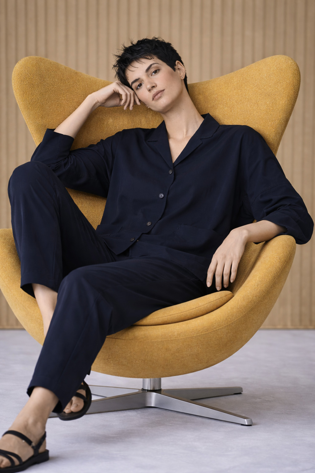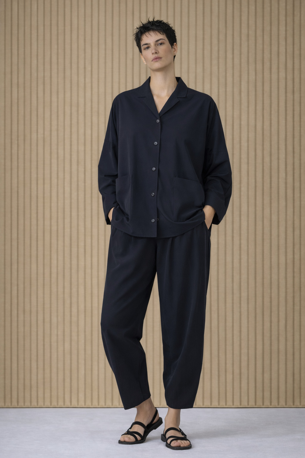 Die OSKA Hose 626 ist aus hochelastischem Hightech-Microfaser-Jersey gefertigt. Sie ist am Bein weit geschnitten, die abgerundete Teilungsnaht betont die typische OSKA Barrel Form. Das modische Modell hat einen rundum elastischen Bund, eingearbeitete Vordertaschen und ist etwa knöchellang. Für einen kompletten Hosenanzug kombinieren Sie dazu die Jacke 605 oder die Bluse 639 aus dem gleichen Material. Das Material ist knitterfrei und somit ideal für die Reise.