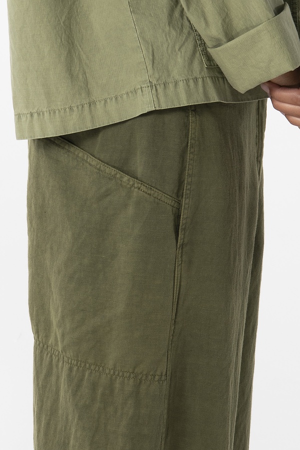 Die OSKA Hose 629 überzeugt durch ihr zeitloses Design und optimalen Tragekomfort. Genäht wurde sie aus einem weichem Lyocell-Leinen-Baumwoll Twill. Das weit geschnittene Bein, das nach unten hin konisch zuläuft, Steppnähte und seitliche Tascheneingriffe sorgen für einen lässigen Look. Ein elastischer Bund hinten bietet Bequemlichkeit, während die großen, eingearbeiteten Taschen ein Blickfang sind.