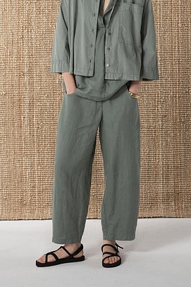 Die OSKA Hose 638 wurde aus einer dichtgewebten, leichten Baumwolle mit bewegter „Oberfläche“ gefertigt und stückgefärbt für einen schönen Farbeffekt. Sie hat ein sanft gerundetes Barrell-Bein und eine perfekte Passform. Durch den elastischen Bund hinten und die beiden Eingriffstaschen im Vorderteil bietet das Modell im Alltag besonderen Tragekomfort. Kombinieren Sie die Hose mit der Bluse 632 aus dem gleichen Material zum schönen Hosenanzug – einfach zum Wohlfühlen.