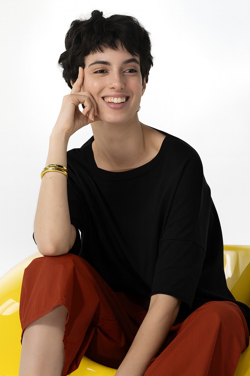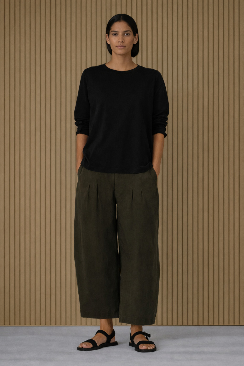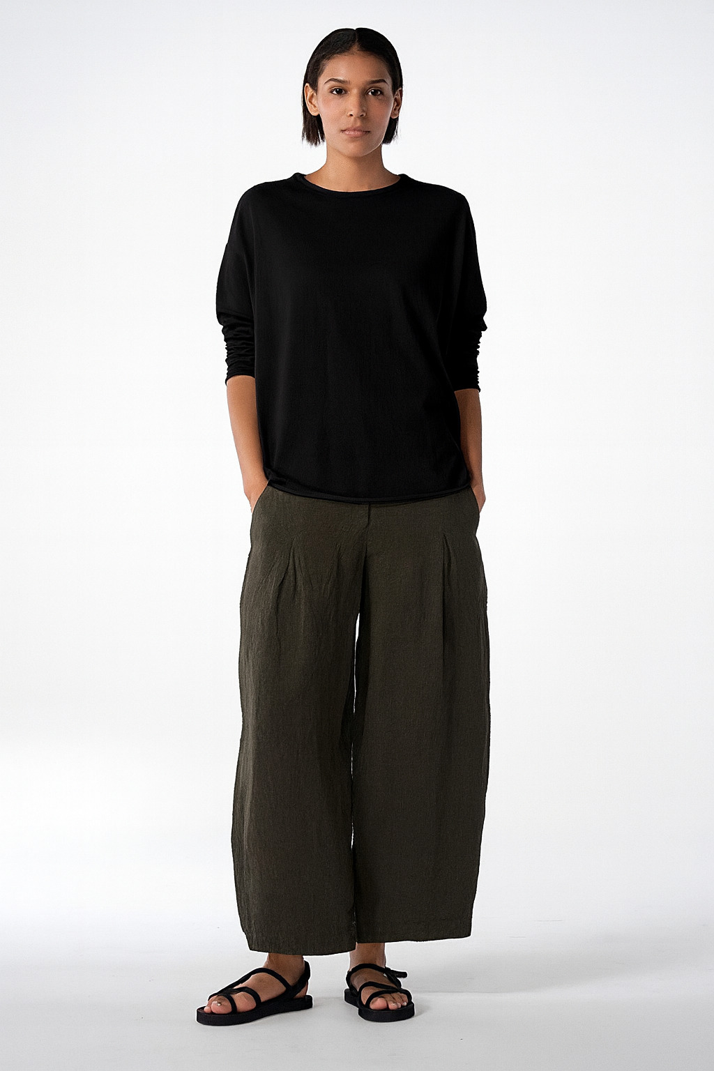 Der aus superfeinem Baumwollkrepp gestrickte, hüftlange OSKA Pullover 612 hat nach außen gelegte Nahtzugaben. Der weite Schnitt mit tief angesetzten, schmalen Ärmeln sorgt für eine entspannte Passform. Er hat einen runden, gerippten Ausschnitt und Saumkanten, die sich minimal aufrollen. Dank seines minimalistischen Designs lässt er sich in jedes Outfit integrieren.